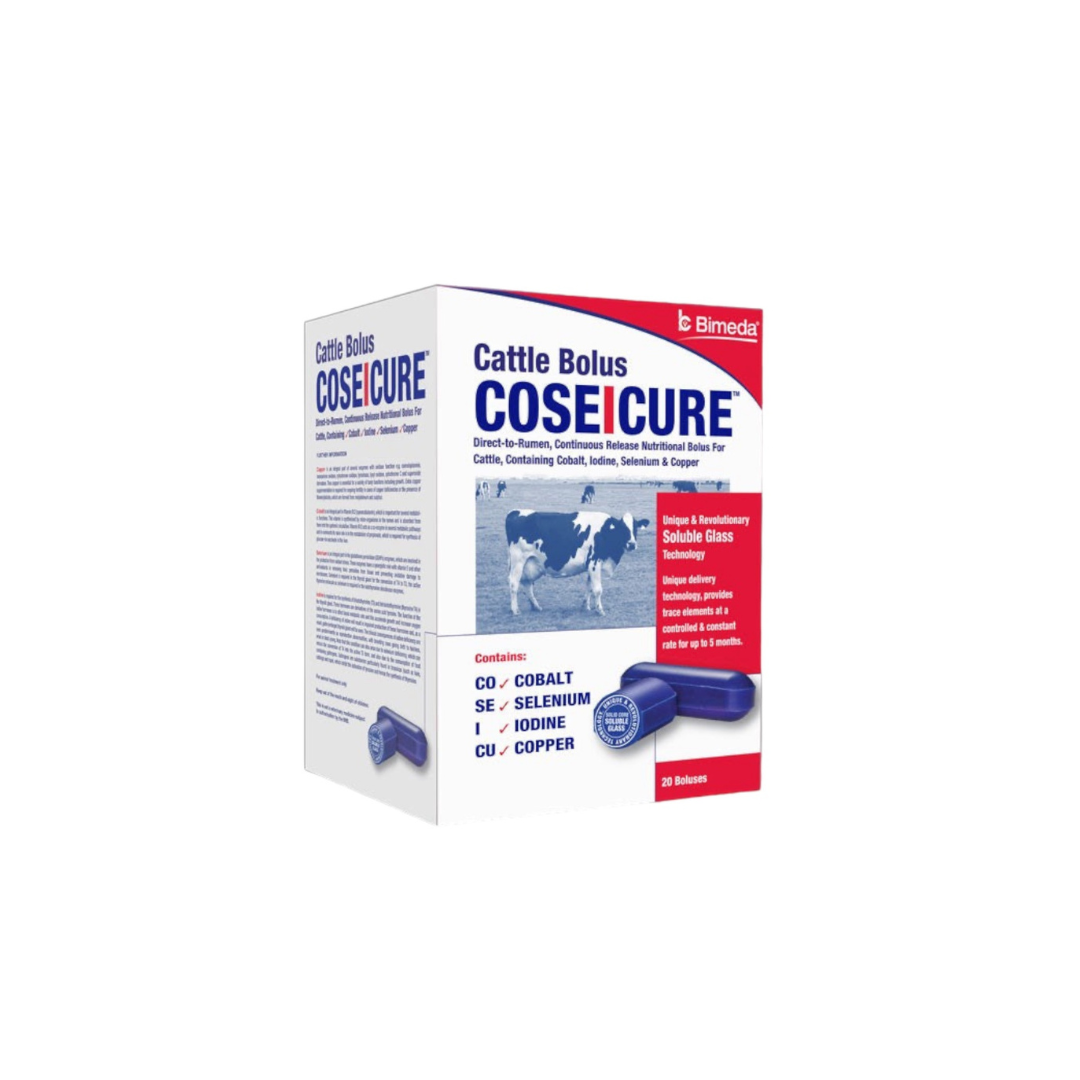 CoseIcure Cattle is a unique, soluble glass trace element bolus for cattle. It delivers rumen-available ionic copper, ionic cobalt, iodine and selenium to the animal at a controlled and constant rate for up to six months.