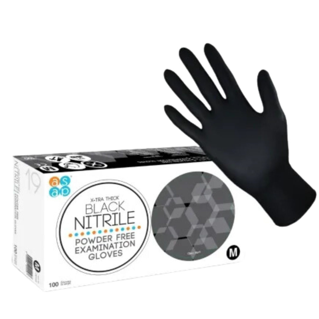 ASAP X-Tra Thick Black Nitrile Powder Free Examination Gloves