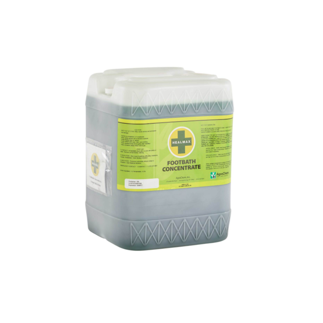 HealMax concentrate is a footbath solution designed to cure the cause and effect of digital dermititis, more commonly known as Mortellaro. Healmax is the proven, quick and effective way to treat and prevent outbreaks of digital dermatitis. The footbath solution is for use as a broad spectrum treatment for the whole group of animals. Healmax should be used at a 2% solution in your footbath. This means that a 200L footbath should be filled with 196L of water and 4L of Healmax. Animals suffering from digital dermititis will have reduced performance and will be susceptible to other problems. One 20L drum of Healmax treat 1500 cows passes. Starts to heal instantly with results visible after three days. Healmax will harden the hoof to prevent further injury. Care should be taken when handling animal medicines and remedies. Always wear appropriate personal protective equipment. Treatment should be once a day for 5 - 7 consecutive days. Maintenance: should be once per day for 3 - 4 consecutive days or use as needed.