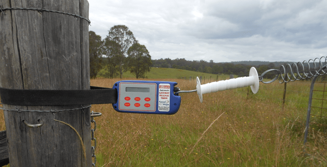 The Batt-Latch is an automatic paddock opening device. The device allows the farmer to open the handle of the paddock by setting the opening times. The Batt-Latch is strapped to the post of the paddock the cows are grazing and then attached to the next paddock once finished and so on.