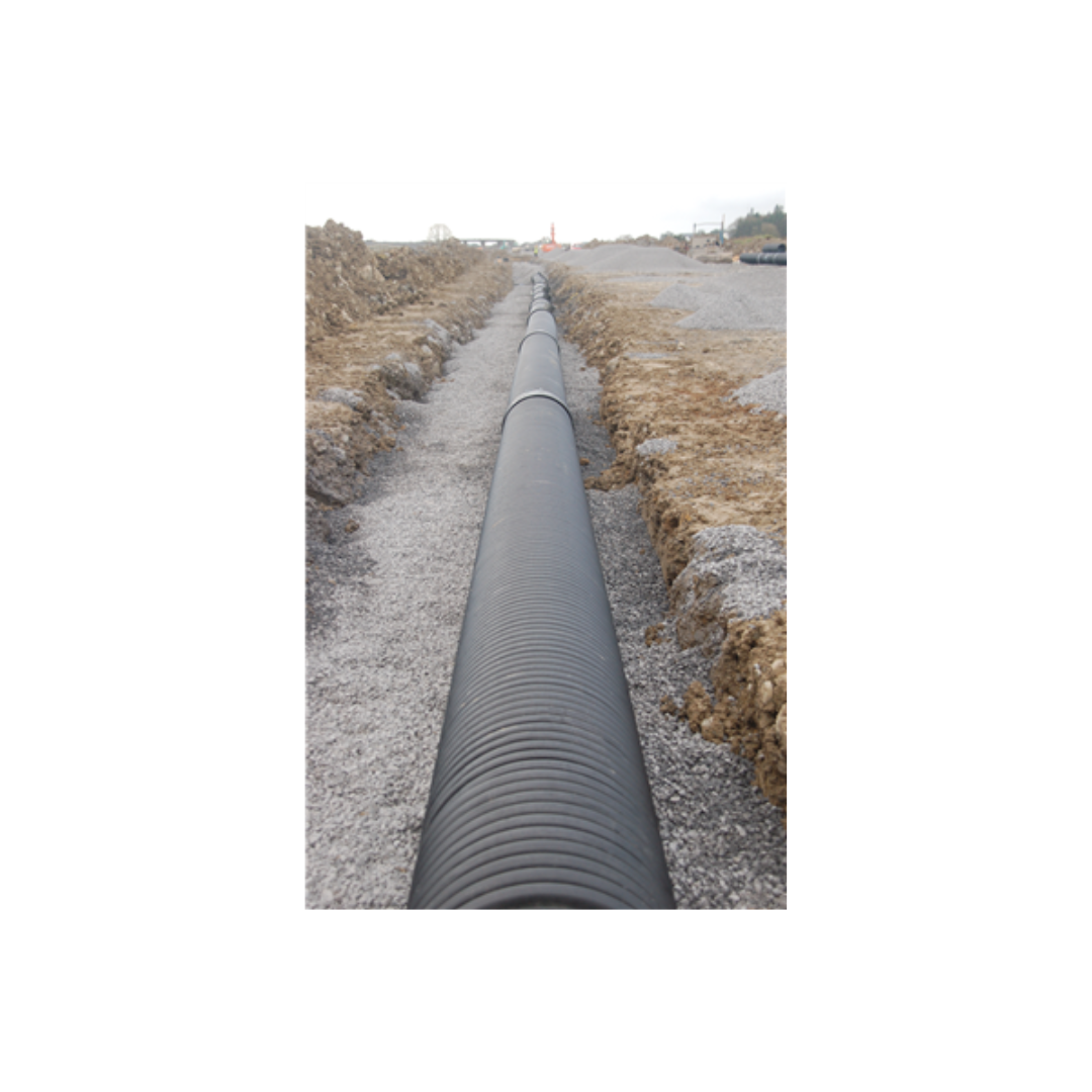 Our 150mm solid twinwall pipe is ideal for gravity surface water and stormwater drainage applications. This pipe is used for highway filter and carrier drains, rail track drainage, golf course land drainage, catchpits and land reclamation projects.