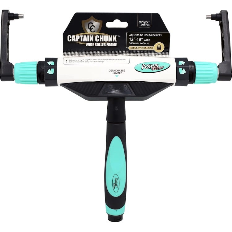 The Axus Captain Chunk Adjustable Wide Roller Frame has an aluminium-polypropylene frame making it robust and lightweight. The frame can be adjusted to fit 12" to 18" (305mm-460mm) Wide rollers. It has a secure twist-lock feature and is compatible with almost all screw-on extension poles.