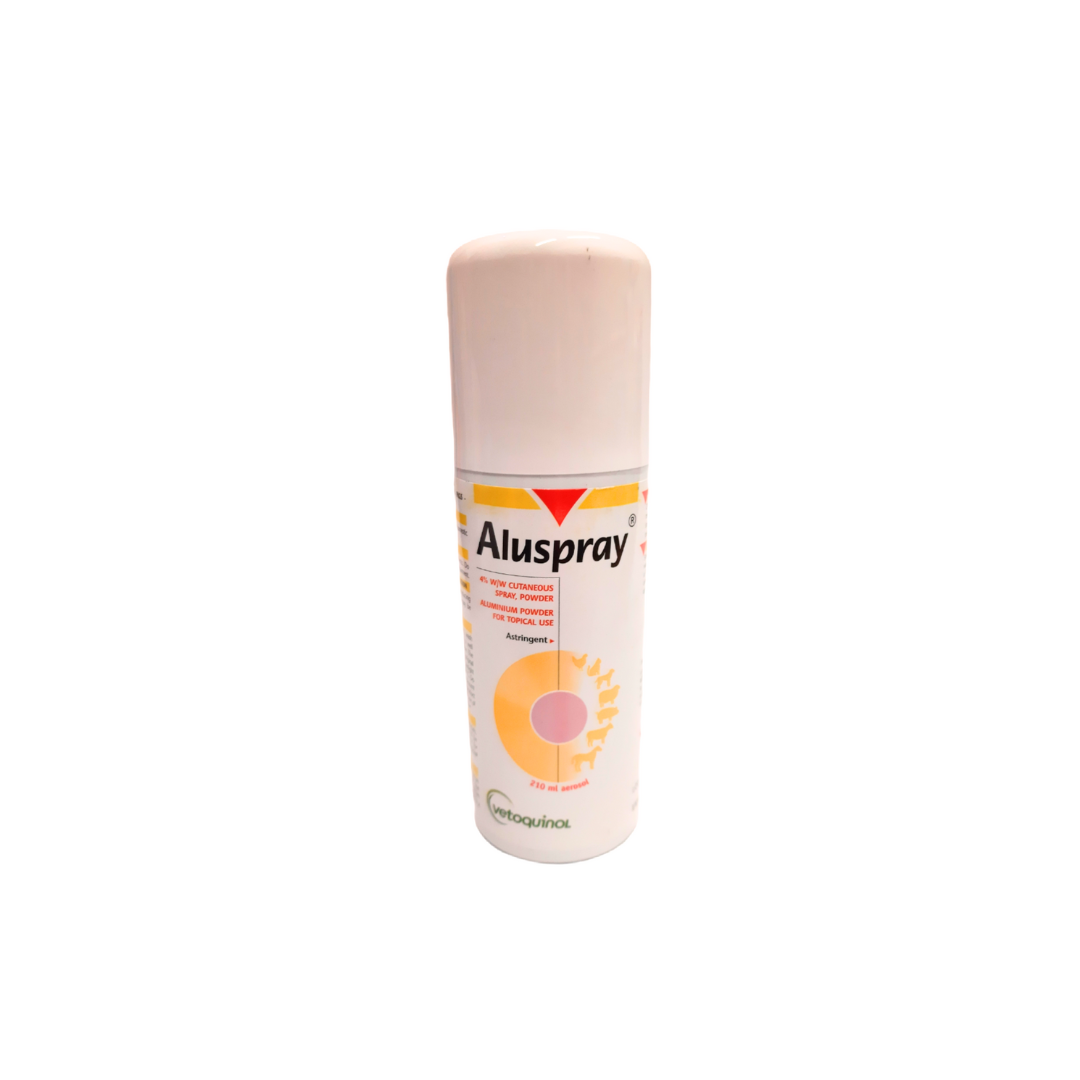 Aluspray forms an aluminium powder barrier that helps protect wounds and sensitive skin. The fine mist completely covers the wound and contains a propietary carrier to ensure it stays where it is needed. You can spray the product quietly and accurately directly onto the affected area with ease, even when dealing with difficult to reach areas. Aluspray allows the wound to heal which is essential for good wound healing and will not burn or blister sensitive skin. Unlike other sprays, Aluspray washes off easily with warm soapy water to allow you to examine the wound. There is no antibiotic in Aluspray, overcoming any concerns over antibiotic residues in animals intended for food consumption. Aluspray should not be used to cover teat injuries in lactating animals producing milk for human consumption
