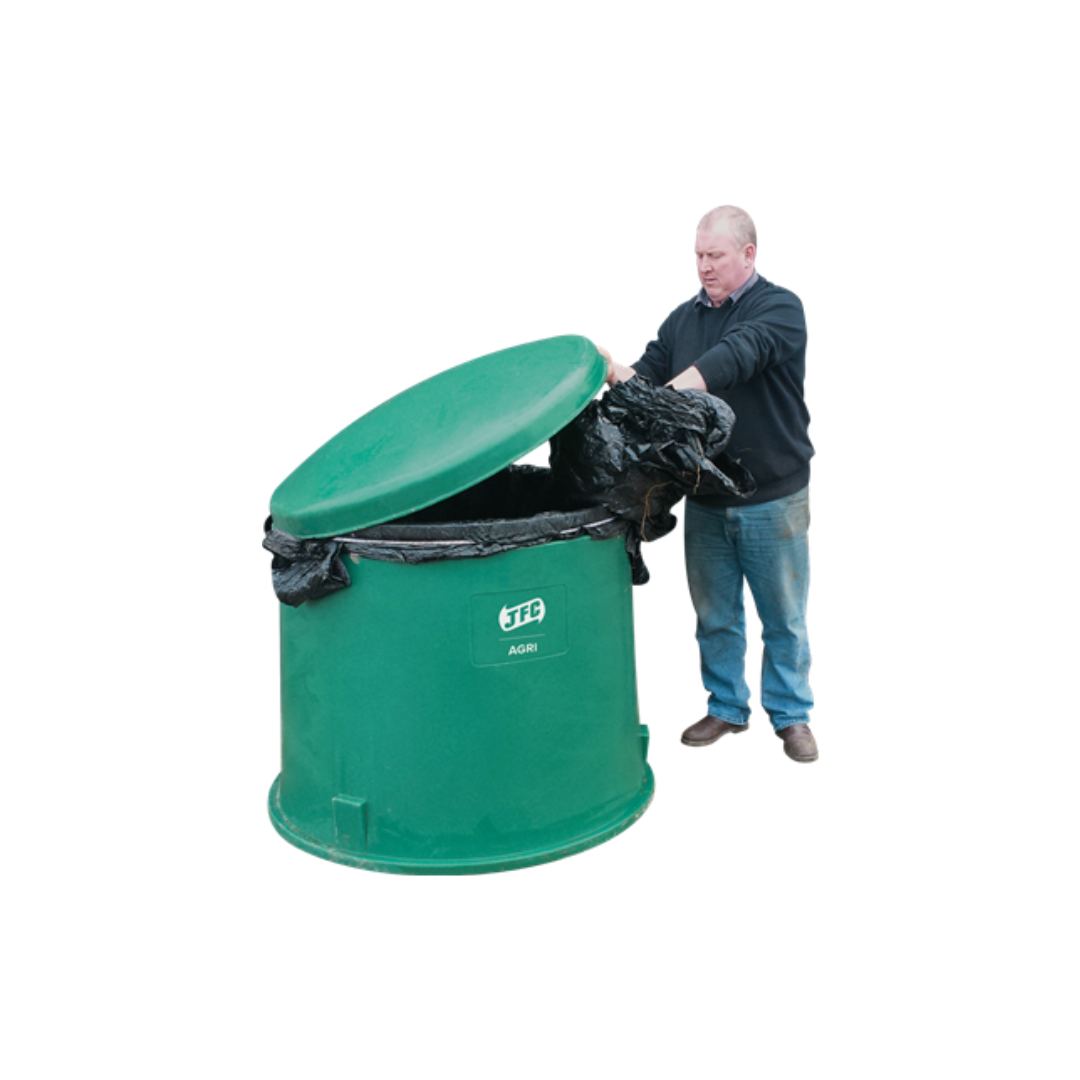 Our TidyWrap is the ideal way to store waste plastic bale wraps. The bin is bottomless and has a removable lid which keeps the bale wraps clean and dry. When used effectively the bin can significantly reduce collection costs as the overall weight is much less than if the bale wraps were wet and contaminated. The TidyWrap is designed specifically to allow a bale wrap to be used as a liner saving on the cost of buying a new liner each time.